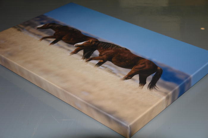 We believe you will be very happy with our mounted canvas prints. Here's why: 1. We start with a very high quality, thick, 21 mil poly-cotton blend canvas (Lexjet Sunset Matte Select). Its surface characteristics are unusually good, providing excellent color, deep dark blacks, sharp image detail, and a very flat reflectivity so as to avoid glare from lighting. Many of our competitors use thinner canvas or faux canvas. Also, many competitive products are glossy, making the canvas texture less apparent, and making it difficult to view the print except in ideal lighting conditions. 2. The spray we use is PremierArt ECO Print Shield, certified by Wilhelm Research. The spray helps to avoid cracking at edges, extends the already very long lifetime (about 150 years) before fading, and provides abrasion resistance, all without adding glossiness to the print. 3. We use thick, sturdy 1.5" x 1.5" kiln dried stretcher bars. Their sturdiness helps to insure that the frame will not warp over time. And, the additional thickness makes the mounted prints look better when hung. 4. The appearance of the sides is important. We don't just appropriate the last 1.5" of your image for wrapping around the frame. We extend your file by 2.75" in each direction to add an appropriate border. And, we know that mirror images (gallery wraps) for borders are ideal in some circumstances, but not good in others (e.g., if your signature appears upside down on the bottom edge, and mirror imaged on the lower right side). We give you eight choices for what will appear in the edge, wrap-around area. The back is also important. We attach a backing panel and hanger. 5. In keeping with our any-shape-or-size capability with our other prints, we have the capability to create 208 different shapes and sizes of stretcher frames. But, we don't make you wade thru 208 different possibilities. We show you just the shapes and sizes that work well with the aspect ratio (height to width ratio) of each of your files, so typically you will have 5-10 size choices to choose from. If you have a panoramic or odd-shaped file, we can give you just the size and shape you need. We offset sizes from 8 x 10 to 32 x 40. Both width and height must be an even number of inches. 6. We have fast turnaround. If you order by noon, central time, on a business day, your canvas print will usually be printed by 2-3PM that same day. That gives us the time we need to make sure the ink is fully dry before we apply the first coat of spray. We apply three thin coats of spray, and each needs to dry completely. We ship on the 3rd business day after you order. 7. Our staff is both experienced and professional, so you can order with confidence. More photos of mounted prints Articles Next article Home |